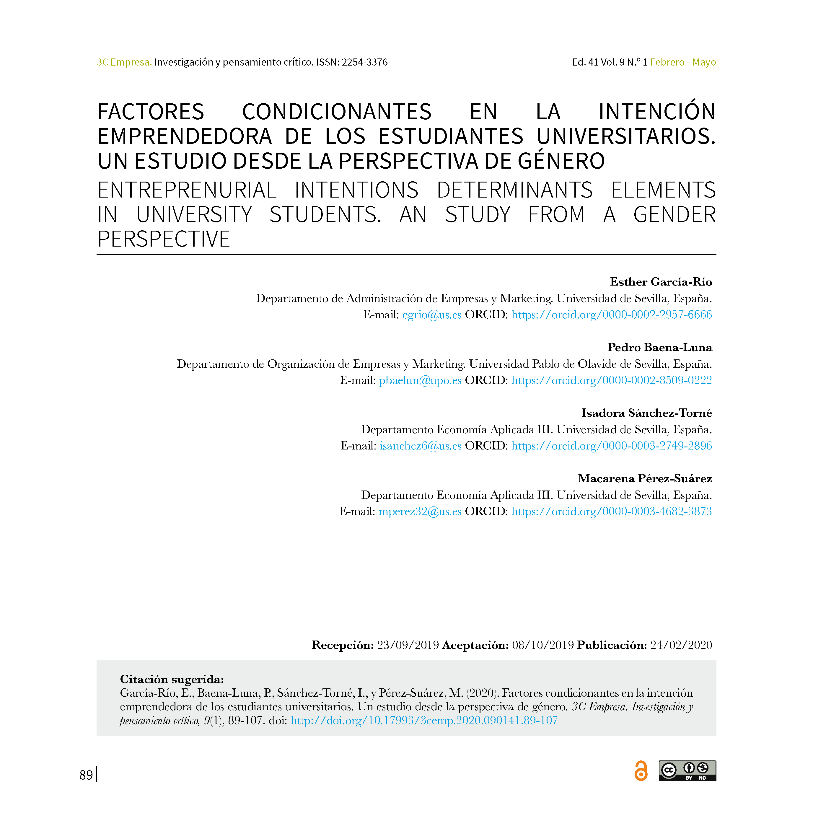 Factores condicionantes en la intención emprendedora de los estudiantes universitarios. Un estudio desde la perspectiva de género
