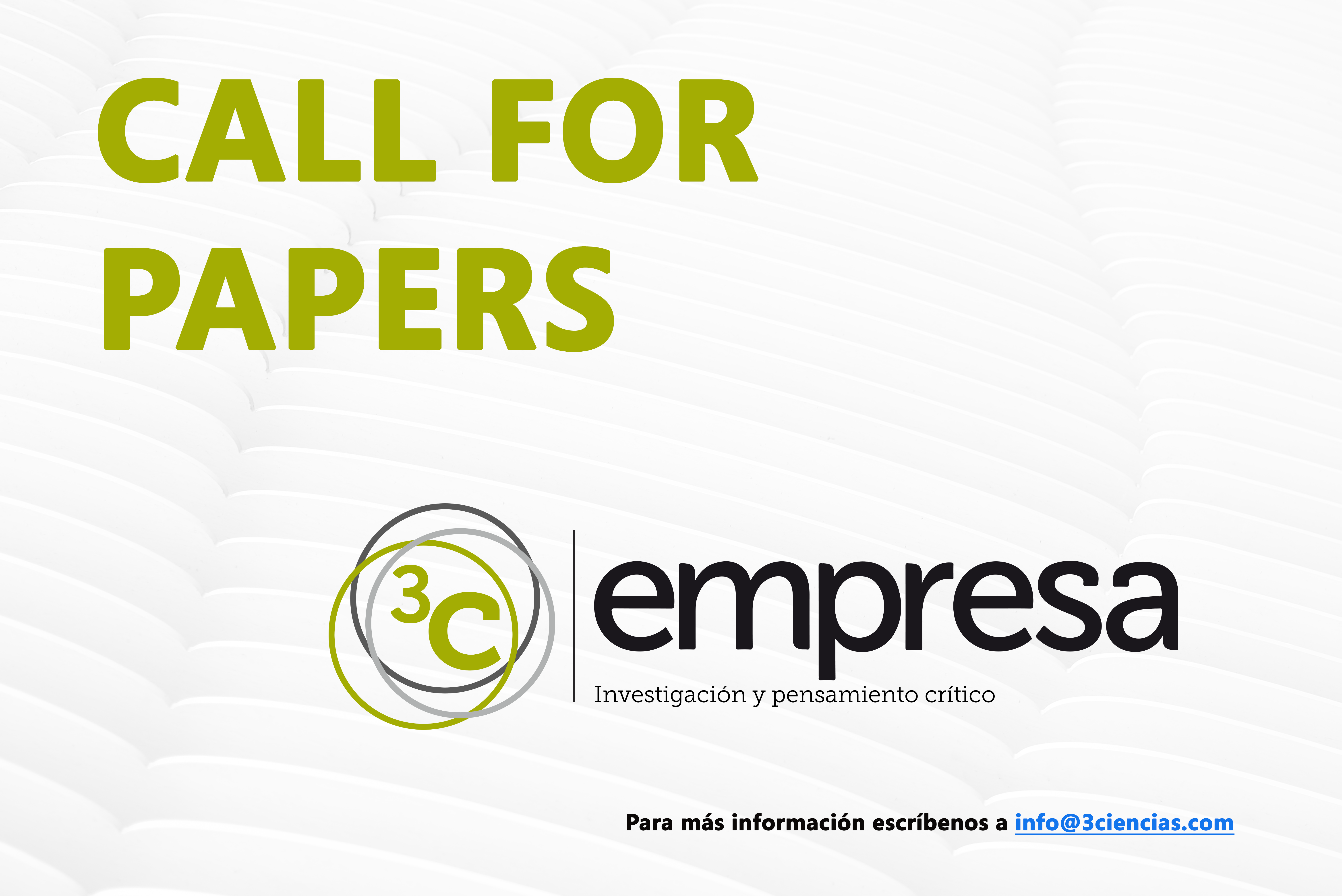 También hacemos un llamamiento de artículos para la revista 3C Empresa. En esta revista se incluyen trabajos relacionados con las ciencias sociales, entre las que destacan la economía, la gestión empresarial e institucional, los mercados financieros, liderazgo, recursos humanos, microestructura de mercado, contabilidad pública y gestión empresarial. |
