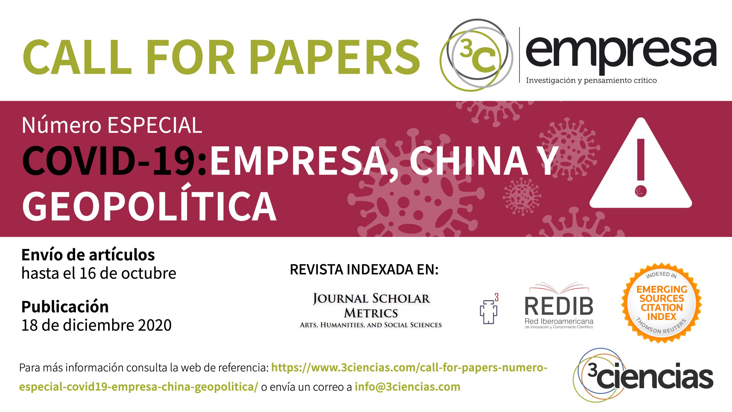 Este número especial de 3C Empresa “COVID-19: empresa, China y geopolítica” está dirigido a todas las áreas de especialización académica que quieran publicar su investigación con fines de divulgación y promoción científica en cuestiones relacionadas con la economía y/o empresa.