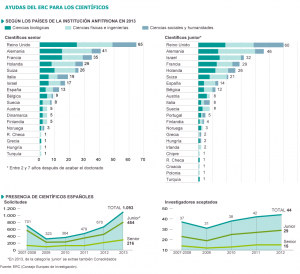 Ante las dificultades económicas que están atravesando los científicos en España, 13 investigadores de alto nivel van a recibir hasta 3,5 millones de euros en cinco años para desarrollar sus respectivos proyectos de investigación. Se trata de las prestigiosas subvenciones del Consejo Europeo de Investigación (ERC) para científicos senior, que este año ha seleccionado 284 proyectos de un total de 2.408 propuestas recibidas.